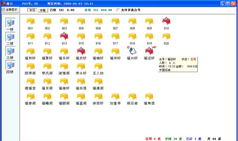 前台界面,所有餐桌状态一目了然