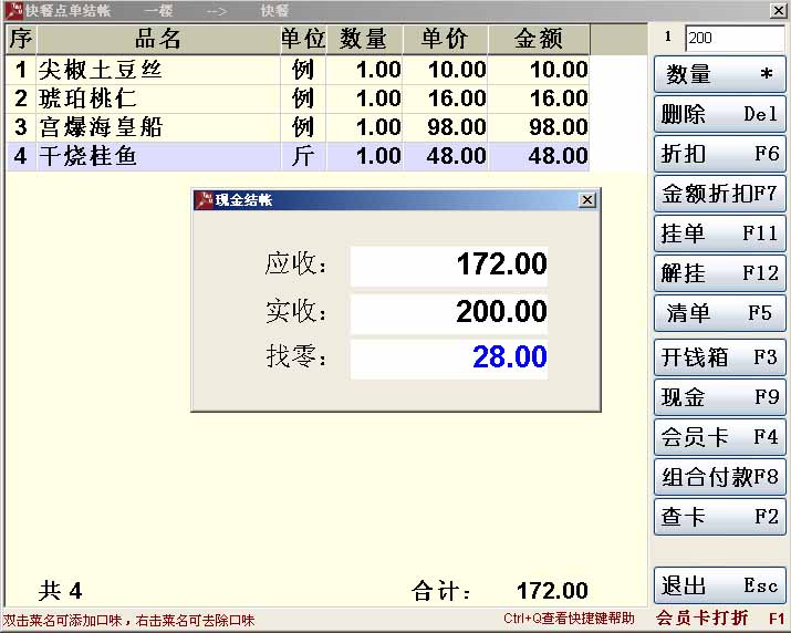 快餐界面,先付款模式快速点单结帐