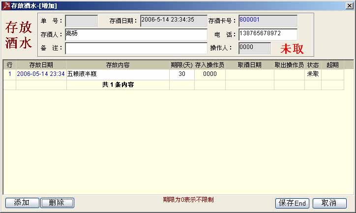 客人存酒水管理